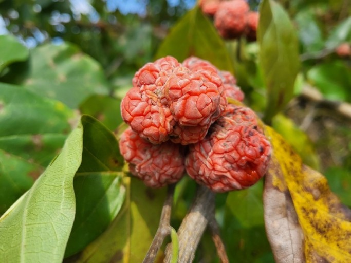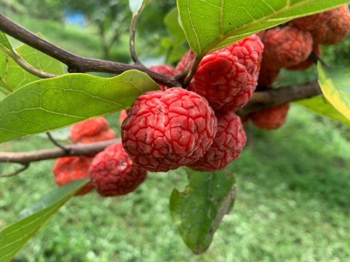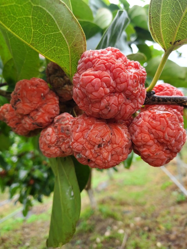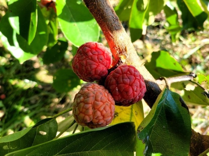 신선이 즐겨섭취하는 음식으로 전해지는 꾸지뽕은 나무는 뽕나무처럼 생겼으며 열매는 붉고 호두 크기입니다. 과육의 겉면에 검은 점이 있는데 이것은 상한 것이 아니라 하얀 진액이 있던 부분입니다. 이 부분에 건강에 유익한 핵심 성분이 들어있습니다.